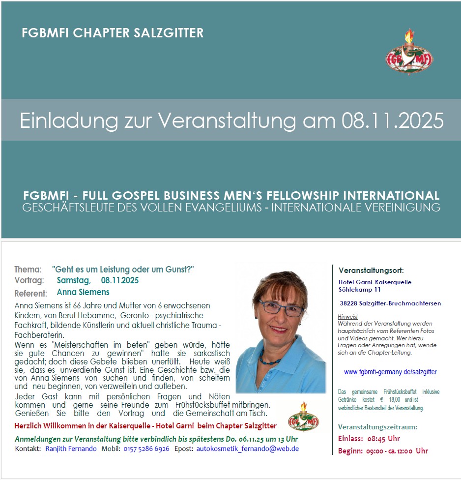 – FGBMFI Chapter Salzgitter 08.11.2025 mit Anna Siemens im Hotel Garni-Kaiserquelle –