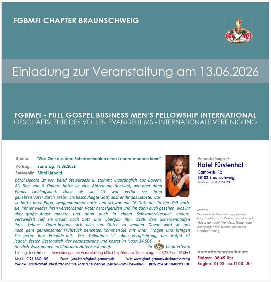 – FGBMFI CHAPTER BRAUNSCHWEIG am 13.06.2026 im Hotel Fürstenhof –